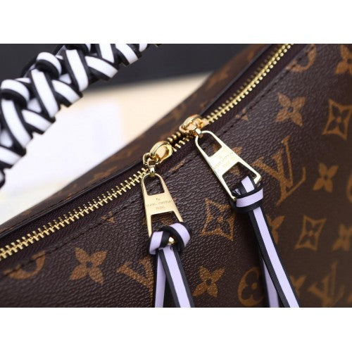 The adorable Beaubourg Hobo Mini handbag in Monogram canvas comes with a stylishly braided top handle for Fall 2019. The House’s exceptional leather craftsmanship can be seen in the hand-painted edge dyeing on the braids. The oversized LV charm adds a sophisticated touch while the colorful nametag and shoulder strap bring a playful feel.