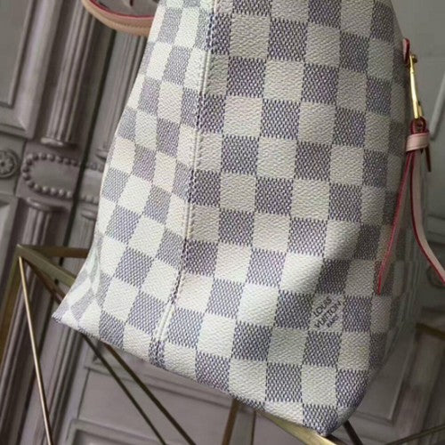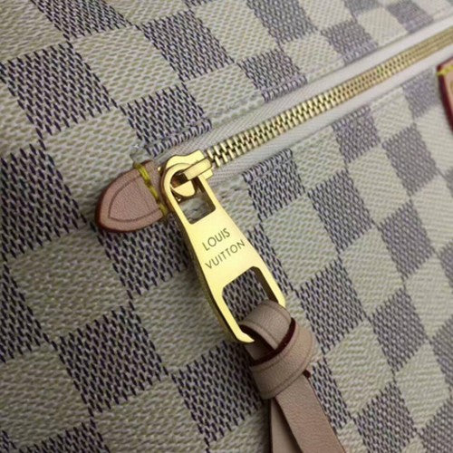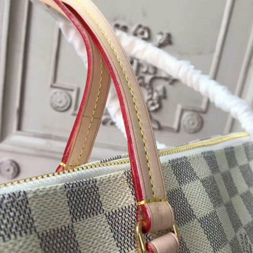 This versatile shoulder tote in Damier Azur canvas is perfect for toting around your daily essentials. Ultra-secure thanks to its zipped main compartment and comfortable to carry thanks to its light weight and supple flat handles, it's ideal for today's modern woman.