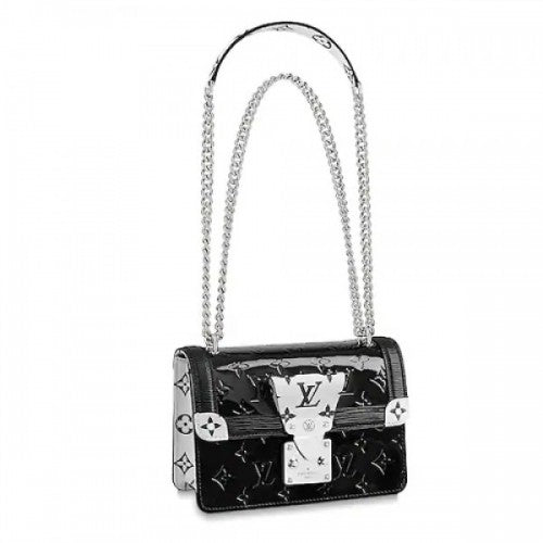Introducing the LV Wynwood, a modern chain bag that unites superb craftsmanship and a fashion-forward attitude. Made from Monogram Vernis patent leather, it is detailed with hardware inspired by Louis Vuitton trunks, and the black-and-white Monogram canvas trim featured in the Summer 2019 capsule. A perfect day-to-evening piece, it is just the right size to hold essentials.