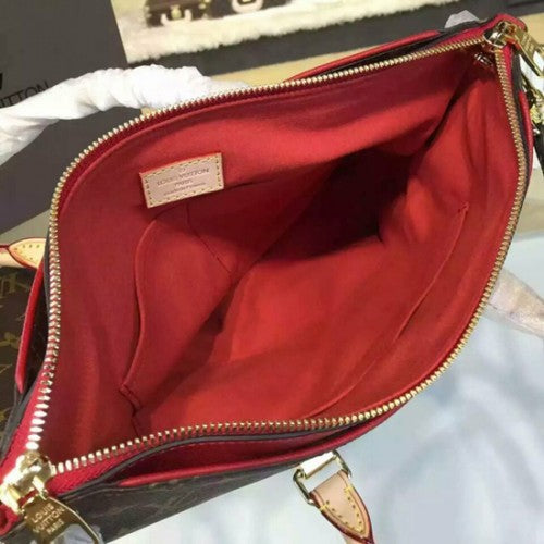 The Pallas is so much more than a chic bag. It'san alluring fusion of Monogram canvas, natural cowhide leather trim andcoloured calf leather, giving it a distinctive look and a very supple feel.