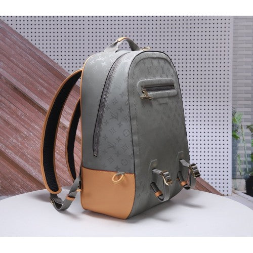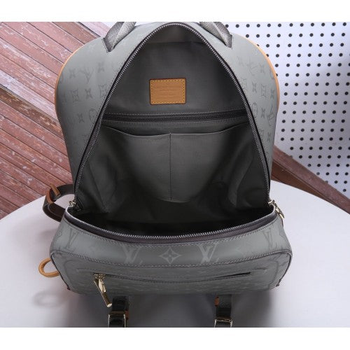 L 12.2 x H 18.1 x W 11 inchesMonogram Titanium coated canvasCowhide leather trimTextile liningTitanium-color hardwareZip closure systemOutside zipped pocketInside zipped pocketInside double pocketAt the Men’s Fall-Winter 2018 show, the Backpack GM stood out as a key shape for the season. This model is crafted from Monogram Titanium canvas, a breakthrough material inspired by space travel. Technical hardware in Titanium-color metal imparts a sporty look to this capacious bag, equipped with padded straps for a comfortable carry.