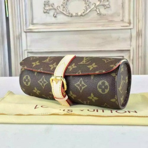 Crafted in iconic Monogram canvas, this watch case, with a soft and luxurious lining, is a perfect travel accessory.