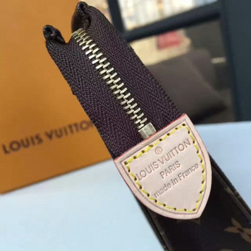 The largest of the toiletry pouch in Monogram canvas boasts a spacious interior with gusset sides for easy storage. It slips easily into a handbag.