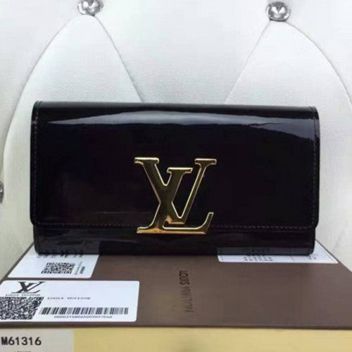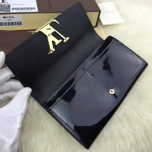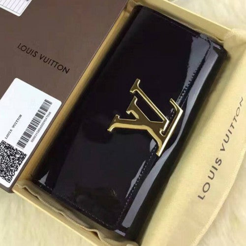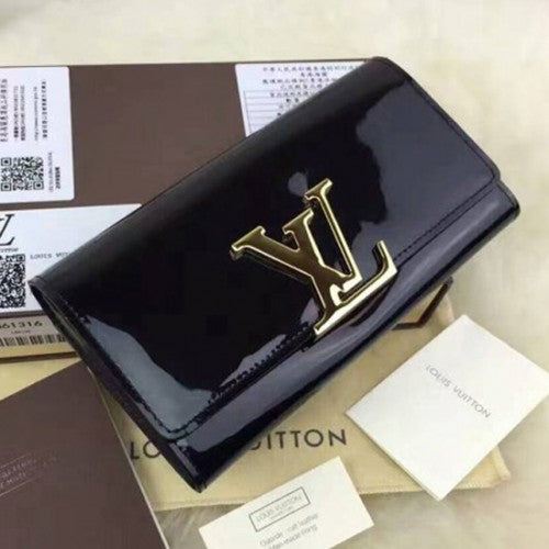 This modern and ultra-feminine long wallet in patent calf leather is instantly recognizable thanks to its iconic LV clasp. A very versatile wallet that can be worn as a clutch.