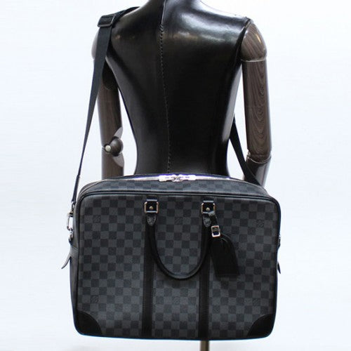 The Porte-Documents Voyage GM in Damier Graphite canvas features a spacious, A4-sized interior and a comfortable shoulder strap. Indisputably the most stylish way of carrying a 15" laptop.
