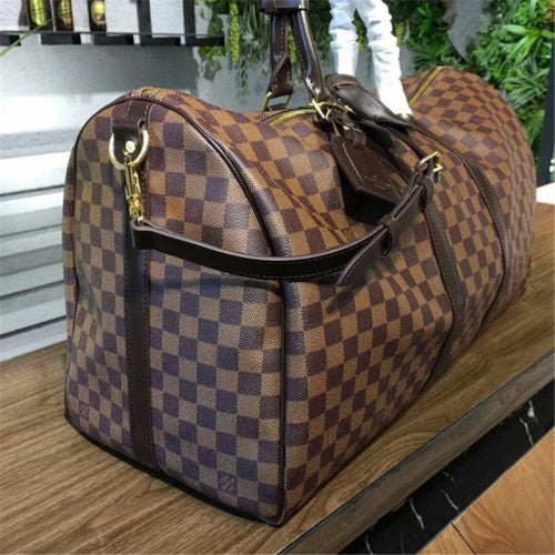 An icon since the appearance in 1930, the Keepall embodies the spirit of modern travel. Light, supple and always ready for immediate departure, the bag lives up to its name: those adept at the art of packing can easily fit a week's wardrobe into the generously sized (and cabin-friendly) Keepall 55. Shown here in classic Damier Canvas, with a strap for casual cross-body wear.