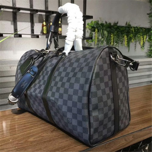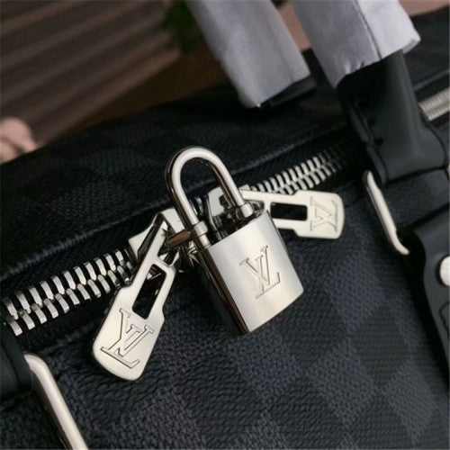 An elegant travel bag in Damier Graphite canvas. Ideal for travelling and taking all the necessities, this bag has a generous amount of space. Can be comfortably carried by hand or on the shoulder.