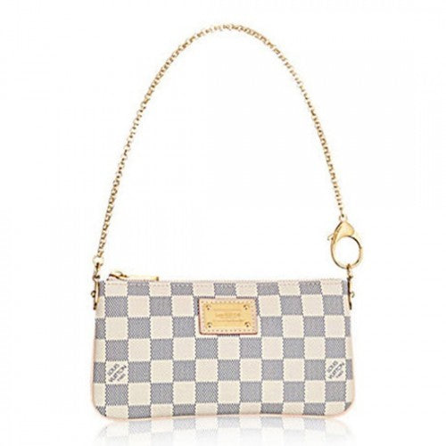 The petite Pochette Milla MM in supple Damier Azur canvas is delightfully fresh and feminine. Its subtle, muted colouring and sophisticated golden chain make it an elegant way to carry the essentials.