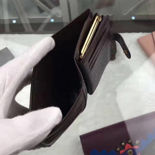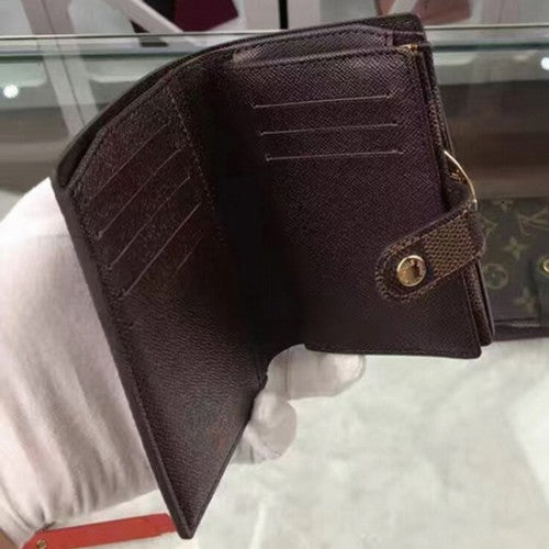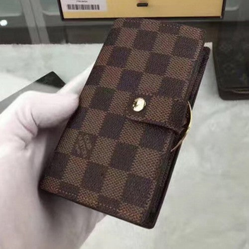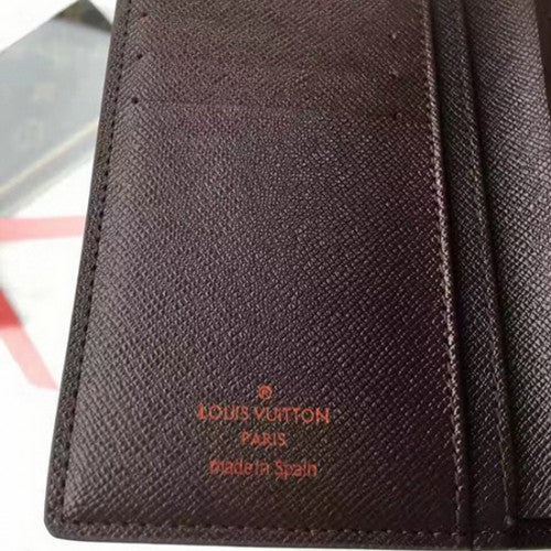 This versatile wallet in Damier canvas is closed with a snap fastener. It holds bills, papers, credit cards and receipts.