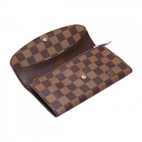 Proving that functionality and beautiful design can go together, the Emilie Wallet is elegance itself in supple Damier Ebene canvas with a fresh lining color. Numerous pockets and an attractive shape make it irresistible.