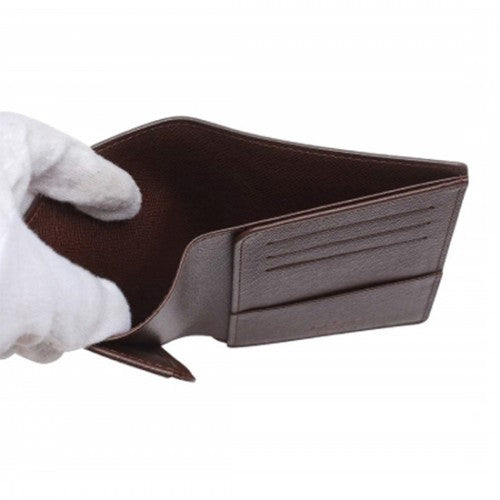 Damier Ebene canvas, rich golden brass and a compact yet functional interior all add to the James Wallet's timeless elegance. Inside, it is luxuriously finished with a grained calf leather lining.