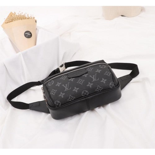 This limited edition Outdoor Bumbag mixes Monogram canvas with supple Taiga leather in a tone-on-tone design that highlights the bag’s modern lines. Belongings stay organized and secure in this hybrid bag designed for hands-free carry.8.27 x 6.69 x 1.97 inches (Length x Height x Width) BlackTaiga cowhide leather and Monogram Eclipse coated canvasCowhide-leather trimTextile liningSilver-color hardwareAdjustable textile and leather strapCentral zipped compartmentFront zipped pocketBuckle fastener