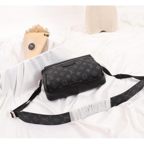 L 11.6 x H 7.9 x W 4.1 inchesTaiga cowhide leather and Monogram Eclipse coated canvasCowhide-leather trimTextile liningSilver-color hardwareAdjustable textile and leather strapCentral zipped compartment with inside flat pocketFront zipped pocket