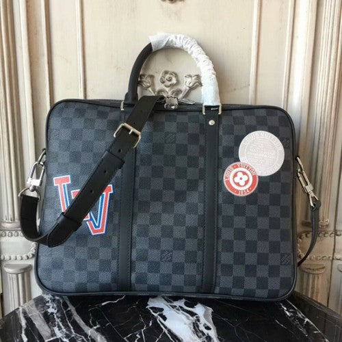 The Porte-Documents Voyage explores and reinvents Louis Vuitton's history, making the old new again with vintage LV travel stickers taking on college feel thanks to the imagination of Kim Jones.