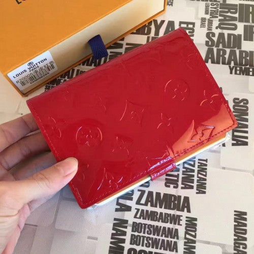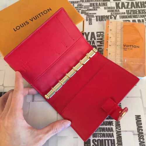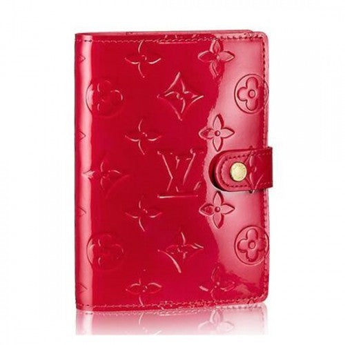 This compact Agenda cover from in Monogram Vernis leather can be used as an address book, calendar or notepad. It features three credit card slots and a press stud closure.