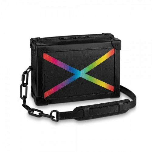 Inspired by the X’s and O’s Louis Vuitton used to personalize trunks at the turn of the last century, the Soft Trunk messenger bag in Taiga leather is marked with a simple symbol in radiant rainbow colors. It has a well-organized interior with inside pockets and an adjustable strap for shoulder carry.