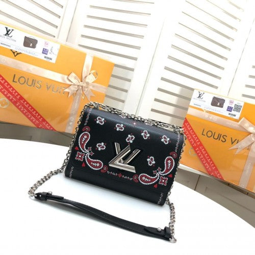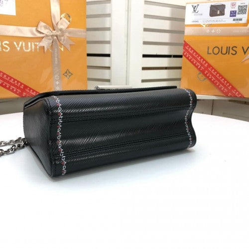 9.06 x 6.69 x 3.74 inches (Length x Height x Width) L 9.4 x H 7.1 x W 3.1 inchesBlackPrinted Epi leatherEpi-leather trimMicrofiber liningSilver-color hardwareSliding chain strap (drop: min. 30 cm/11.8 inches, max. 56 cm/22 inches) with leather pad for shoulder or cross body carryTransforming signature LV twist-lockInside flat pocket with removable mirrorLarge inside pocket