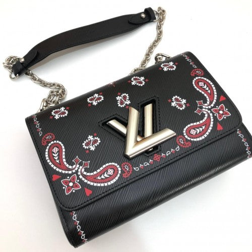 For Fall 2019, the iconic banana pattern comes to the Twist MM handbag, with a fresh interpretation of the emblematic Monogram blossoms. The printed flowers and arabesques form a typical paisley pattern on the Epi leather. The convertible chain handle can be worn cross-body or hung elegantly on the shoulder.